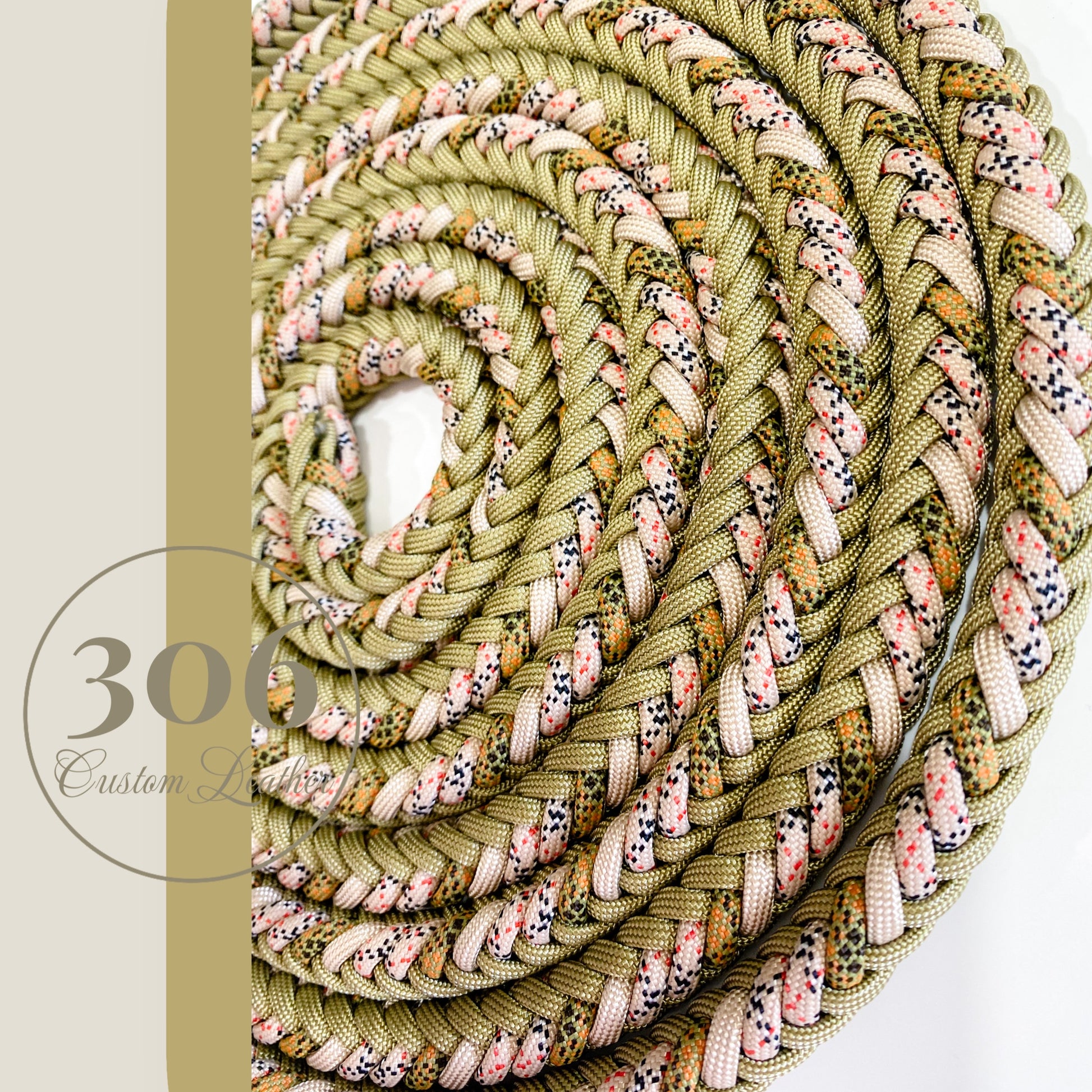 -1/2 leather, 1/2 rope NECKROPE with 2 buckles on either side for adjustments. Made with premium Cypress Latigo, hand stitched, finished edges, oiled and ready for use. (62”-67”)